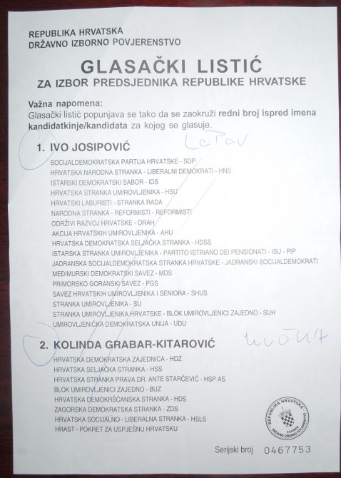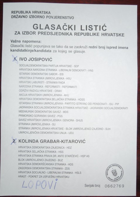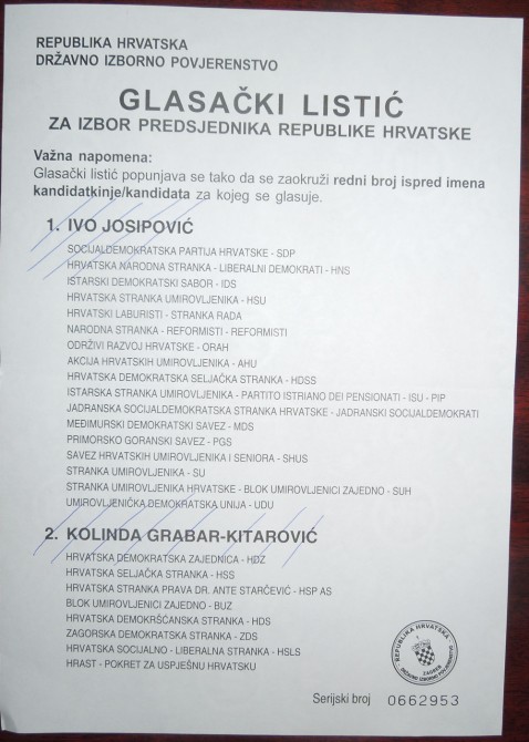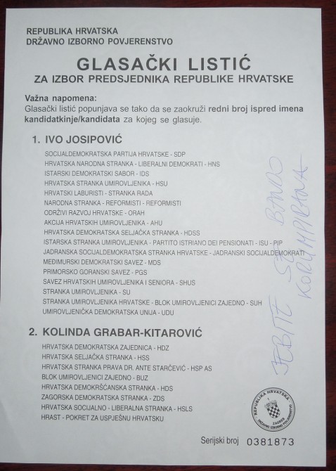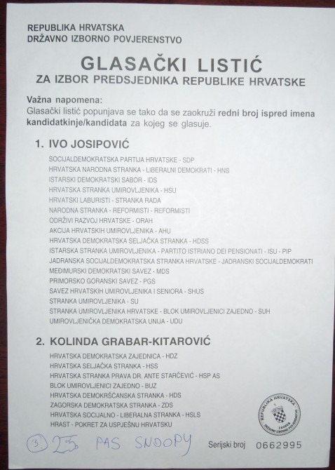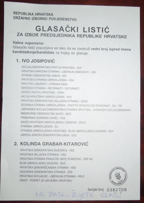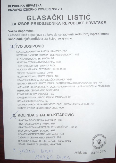 Prvo nam je pod ruku došao glasački listić Živog zida, čiji je kandidat Ivan Vilibor Sinčić ispao u prvom izbornom krugu, a čiji su simpatizeri u najvećem broju u drugom krugu na listićima ispisivali njegovo ime i ime te stranke. "Naziv te organizacije moramo prekriti jer ona upućuje na ime njezinog kandidata koji je sudjelovao u prvom krugu izbora", rekle su nam revnosne službenice DIP-a i prekrile naziv Živog zida neprozirnom ljepljivom trakom - selotejpom. Dokazivanje da je povjerenica naložila prekrivanje imena samo fizičkih, a ne i pravnih osoba, i to samo onih fizičkih osoba "koje se nisu kandidirale na predsjedničkim izborima" nije urodilo nikakvim pozitivnim rezultatom.