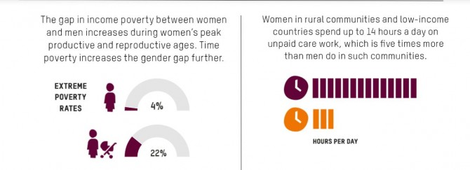 Podaci Oxfamovog istraživanja ukazuju da žene u slabije razvijenim zemljama po 14 sati dnevno rade neplaćene poslove, što je pet puta više od muškaraca, zbog čega im ne preostaje dovoljno vremena za sudjelovanje u društvenim i političkim aktivnostima. Osim toga, djevojke koje obavljaju veliku količinu neplaćenog posla kraće se školuju od drugih djevojaka i onemogućeno im je sudjelovanje na tržištu rada.