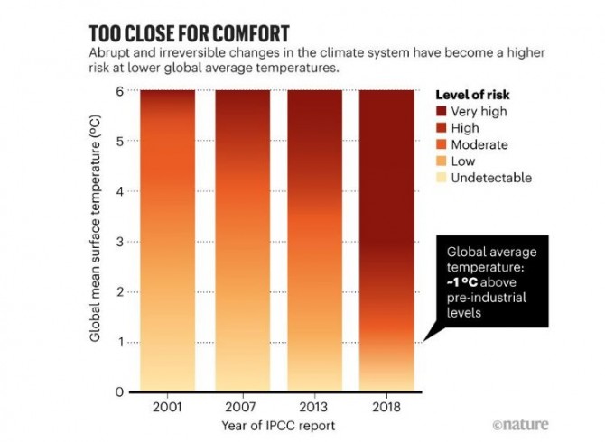 “Postoji jako velika razlika kada razgovaramo o klimatskim promjenama s pozicije točaka preokreta i one kada ne prepoznajemo realitet točaka nakon kojih nema povratka”, kaže profesor na australskom Nacionalnom sveučilištu u Canberri Will Steffen, jedan od autora novog znanstvenog rada objavljenog u časopisu Nature uoči nove runde klimatskih pregovora koji se održavaju u Madridu do 13. prosinca.