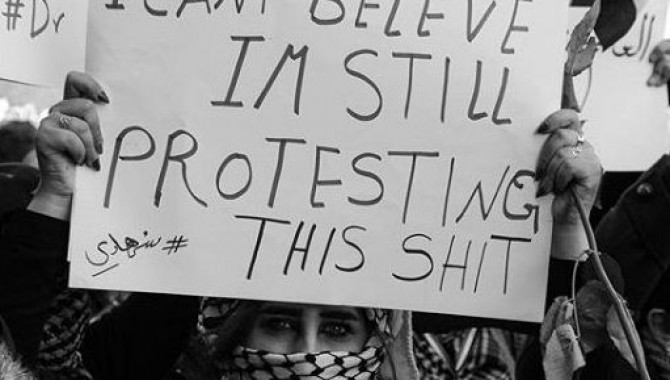 Na prosvjedima koji su organizirani u više iračkih gradova - u Bagdadu, Basri, Nasiriyahu, Najafu i Karbali - žene su držale prosvjedne govore, a plakatima na engleskom i arapskom jeziku poručile, između ostalog: "narode, revoluciju ćeš dovršiti ti", "zasutavimo rodnu segregaciju", "žene su revolucija, a ne genitalije".