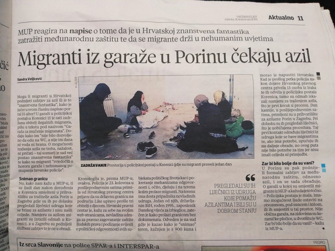 U posebnoj sekciji teksta u Večernjem listu, naslovljenoj Zar bi bilo bolje da su vani? stoji pak još jedno bizarno priznanje o "humanom" držanju u garažama: "O garaži u kojoj su smjestili migrante iz MUP-a kažu da je to točno. 'Policijska postaja je mala. Imamo mogućnost ostaviti ljude na otvorenom, pod suncem i kišom, ili ih smjestiti u taj prostor. Nije obična garaža, na zidovima su keramičke pločice, u dvorištu je wc. Zar bi bilo bolje da su vani?".