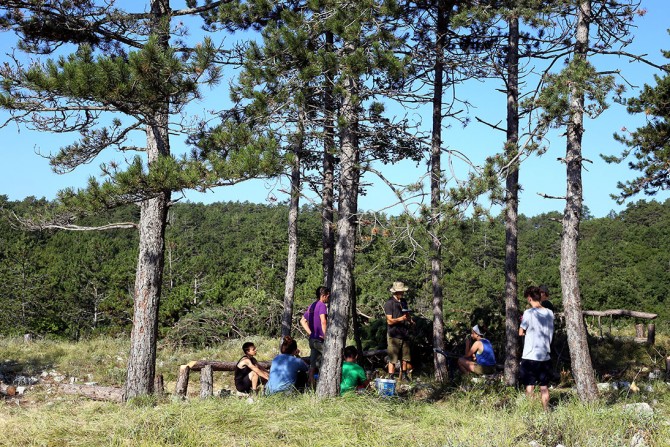 Zadnjih nekoliko dana kampa tako smo u kampu osim volontera iz Hrvatske, zatekli volontere i volonterke iz Njemačke, Engleske, Gruzije i SAD-a. Kroz kamp je u mjesec dana prošlo oko 35 ljudi. Neki su od njih ovdje proveli i nekoliko tjedana ljetnog vremena u fizički vrlo napornom poslu, stvarno alternativnom načinu provođenja ljeta od ležanja na plaži. Kako se sada više malo tko stočarstvom na Učki bavi, nekadašnji pašnjaci su zarasli u grmlje i borove. No, i borove koji ovdje smanjuju bioraznolikost, je opet čovjek donio na ovo područje tako da je cijeli postojeći ekosustav složen sustav djelovanja ili nedjelovanja čovjeka