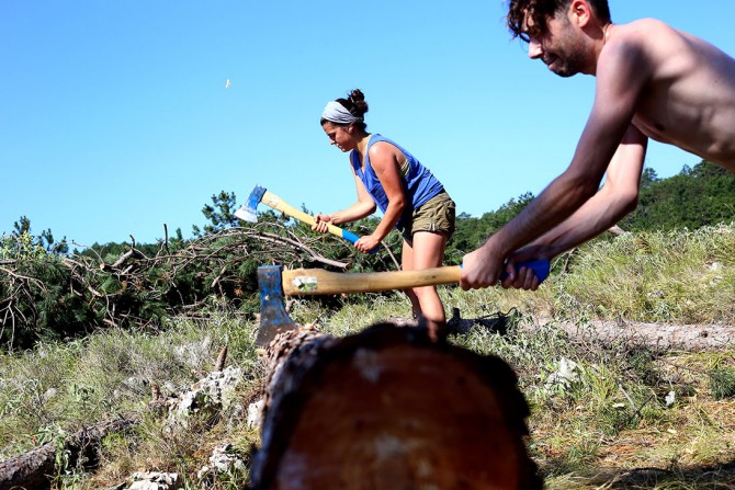 "Evo ovakvim se stvarima želim baviti, vraćanjem prirodi onoga što je čovjek uništio", govori jedna od stranih volonterki koju smo zatekli na BIOM-ovom volonterskom kampu iznad Mošćeničke Drage, u Parku prirode Učka.Ovi ljudi u BIOM-ovom kampu bili su spremni provesti dio ljeta u robinzonskim uvjetima, bez WC-a i stalnog izvora električne energije, pa tako i mobilnih telefona, uz teški fizički rad na koji je rijetko tko danas navikao. Zato su uistinu zaslužili svoje mjesto u H-Alterovoj seriji tekstova o drugačijem ljetu