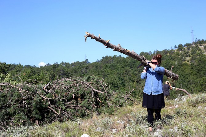 Četvrti u seriji tekstova tekst je Marine Kelava, reportaža o kampu iznad Mošćeničke Drage, u Parku prirode Učka, gdje volonteri krče zarasle livade i vraćaju staništa leptirima. Ljeto je to koje ne potiče ubrzanu devastaciju obale, apartmanizaciju, kič i hranjenje zmaja udobnosti.