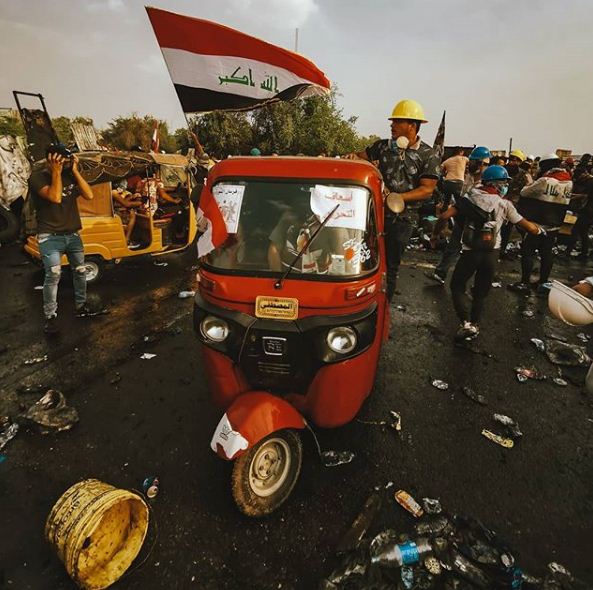 Iračani i Iračanke i dalje prosvjeduju ujedinjeni, u čitavoj zemlji, od Basre do Najafa, nezadovoljni zbog ekonomskih teškoća i korupcije. Iako se prosvjeduje uglavnom mirno, odgovor sigurnosnih snaga na prosvjede je brutalan – poginulo je, prema procjenama UN-a, najmanje 319 ljudi, a više od osam tisuća ozlijeđeno.Iako teoretski prostor bezakonja, Tahrir izuzetno funkcionira u državi koja je nesposobna osigurati radna mjesta, pristup pitkoj vodi ili električnu energiju