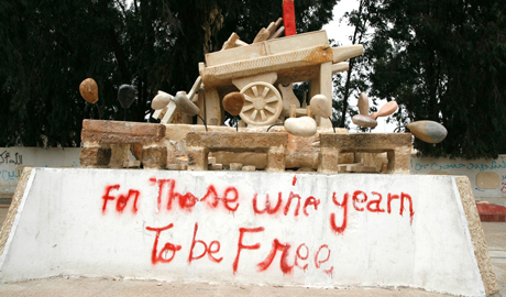 "Ove ceste jedan su od razloga zašto se narod pobunio. Bogati gradovi na obali povezani su autocestom, a unutrašnjost je nerazvijena, besperspektivna i potpuno siromašna", govori mi Wajdi pri ulazu u Sidi Bouzid. Ispred nas maleni je grad okupan vjetrom, niskih kuća s minimalnim prometom. Podsjeća na gradove iz filmova o Srednjem Zapadu. Na početak revolucije podsjeća nekoliko spaljenih Vladinih zgrada, veliki plakat s likom mučenika Mohameda Bouaziza i skulptura kola za prijevoz povrća na kakvima je radio većinom svog života. Sve u svemu... pustoš.
