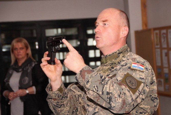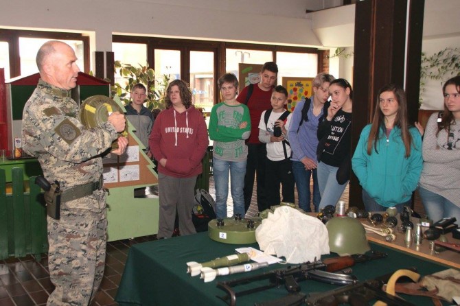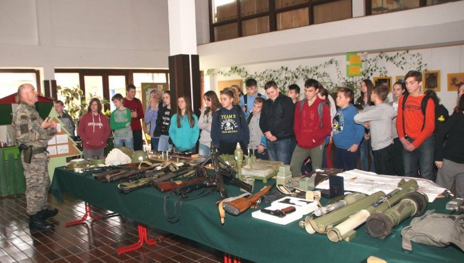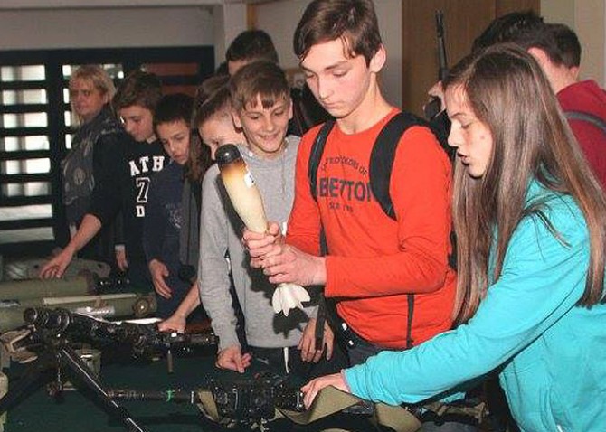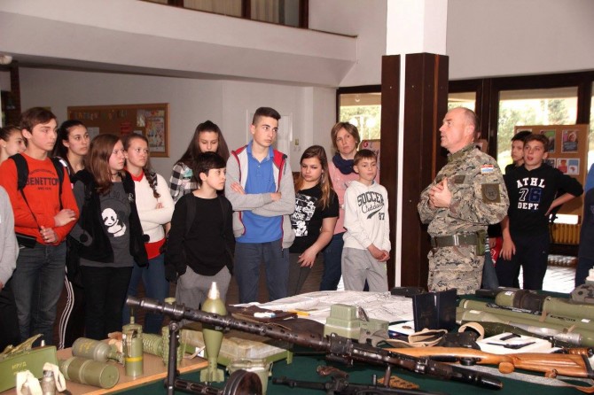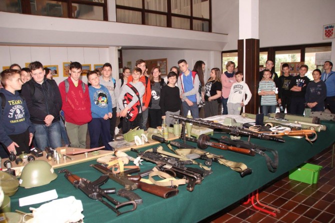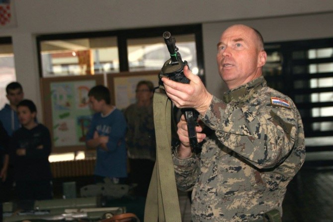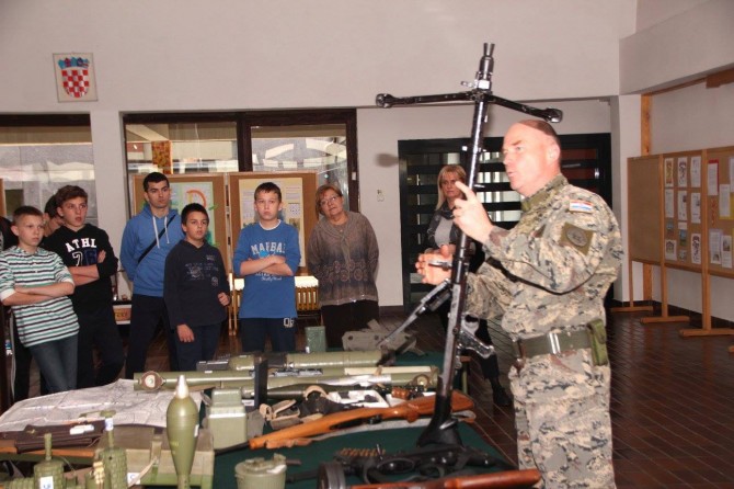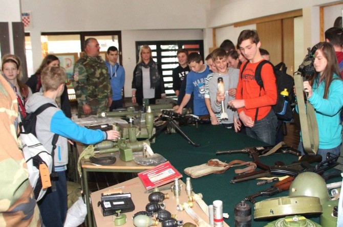 Bombe, mine, puške, mitraljezi, pištolji i muškarci u vojnim uniformama. U "normalnim zemljama" ovaj se prizor može vidjeti u posebno ograđenom i dobro čuvanom prostoru gdje civili nemaju pristup, kojeg nazivamo "vojarna", ili, rjeđe, u specijaliziranim muzejima. Nažalost, Hrvatska je daleko od "normalne" zemlje jer ovdje isti prizor možemo vidjeti ne biste vjerovali, u osnovnoj školi.