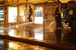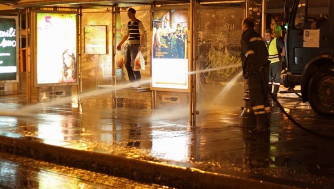 Noćna je film o zagrebačkim peračima ulica napravljen u formi gustog foto eseja. Zagrebački "mlazničari" prikazani su u dva karakteristična prostora: glasno praznom gradu, te tiho punim prostorima poduzeća Čistoća. Repetitivni, visoko estetizirani kadrovi pranja kroz kontrast s neočekivanim tonom, donose vrlo bliske i svakodnevne karaktere perača. Kraj je ništa drugo do namjerna greška proizašla iz dojma da posao perača niti može biti završen, samo prekinut do sljedeće noći.
