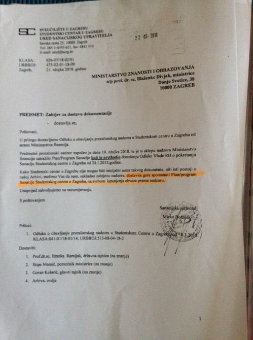 Iz Kolarićevog ureda odgovoreno nam je kako je "poslovanje SC-a Zagreb danas takvo da redovito prema svima ispunjava sve svoje financijske obveze u valuti" te da "Ministarstvo financija RH, Uprava za financijsko upravljanje , unutarnju reviziju i nadzor, sektor za financijski i proračunski nadzor u 2018. godini obavilo proračunski nadzor zakonitosti i namjenskoga korištenja proračunskih sredstava u Studentskom centru Zagreb, u razdoblju od 1. siječnja 2013. do 31. prosinca 2017. godine. Navedenim nadzorom nisu utvrđene nepravilnosti vezano za trošenje sredstava iz Državnog proračuna".