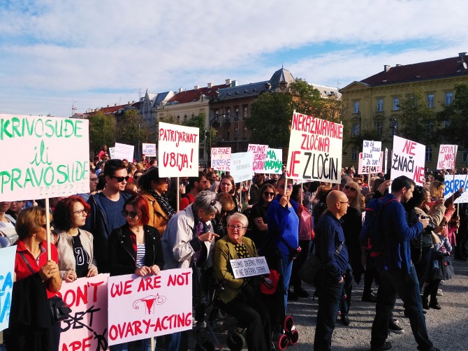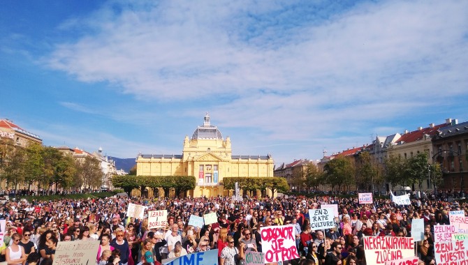 Povod za prosvjed bio je slučaj silovanja maloljetnice u Zadru, točnije puštanje na slobodu petorice osumnjičenika za opetovano silovanje, seksualno iskorištavanje, ucjenjivanje te fizičko i psihičko maltretiranje petnaestogodišnje djevojke koje je trajalo godinu dana."Seksualno nasilje prema ženama počinje u najranijoj dobi, a poprima razne oblike. Kad odmahuju rukom na tvoju nelagodu u djetinjstvu, kad tvoje granice ne smatraju važnima, kad tvoju seksualnost smatraju prljavom - omogućavaju i one puno teže oblike seksualnog nasilja. Kad se smiju na šale o silovanju - podržavaju silovanje", poručila je s pozornice Jelena Tešija
