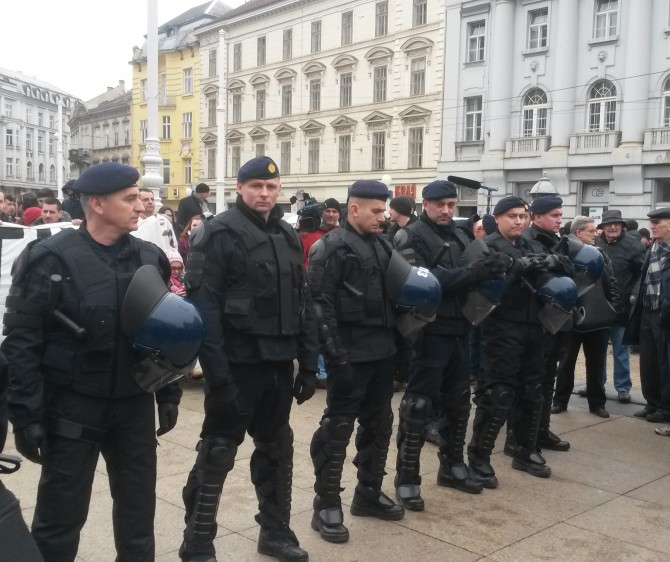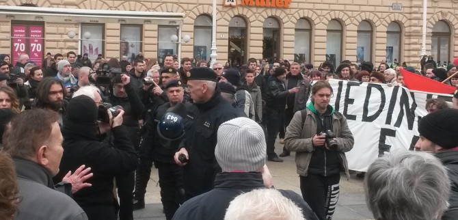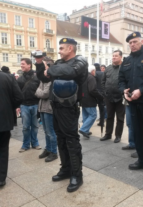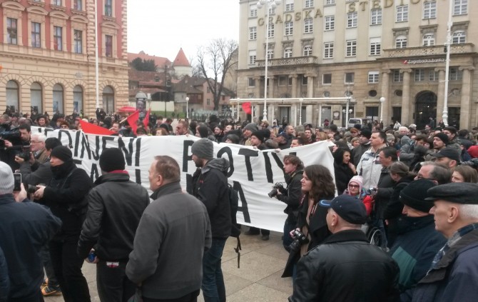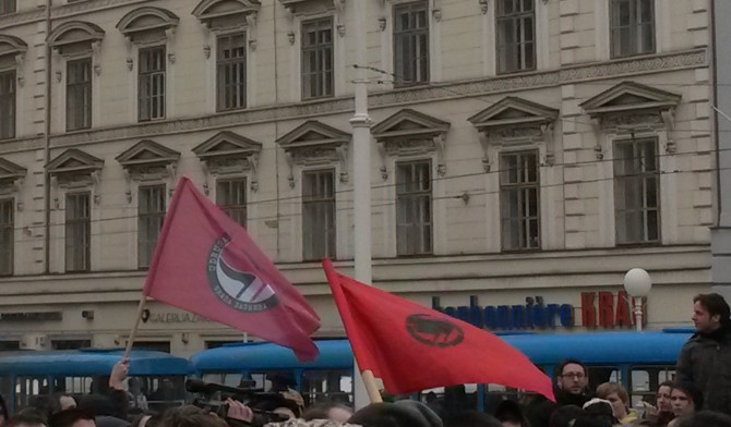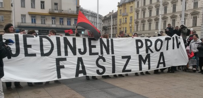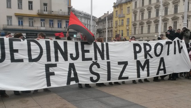 Par stotina antifašista okupilo se danas na Trgu bana Jelačića kako bi upozorili na fašizaciju društva, a glavni povod okupljanja bio je pokušaj postrojavanja paravojne formacije Hrvatske domoljubne snage, organizirane od strane profašističke stranke A-HSP (Autohtona-Hrvatska stranka prava). Okupljeni antifašisti, koje je okružila policija, razvili su transparent Ujedinjeni protiv fašizma te poručili kako neće dopustiti širenje mržnje i nastavak fašizacije društva, već da će se boriti za tolerantno i solidarno društvo. Na to su reagirali i simpatizeri paravojnih formacija koji su antifašistima dobacivali da su Ostojićevi plaćenici, udbaši, crveni okoti uz gomilu psovki i neizostavne ustaške pjesme na što policija nije reagirala. Iako je prosvjed završio nakon nešto više od sat vremena, policija je ostala na Trgu još par sati.