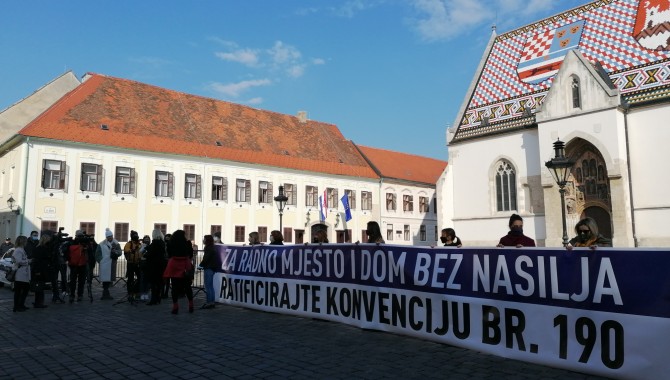 Sindikalne središnjice ovom su akcijom još jednom pozvale Vladu Republike Hrvatske da hitno pokrene postupak ratifikacije Konvencije br. 190 Međunarodne organizacije rada o nasilju i uznemiravanju u svijetu rada. "Riječ je o Konvenciji kojom se čvrsto određuju međunarodni standardi te se po prvi puta utvrđuje opće pravo svih radnika na rad bez nasilja i uznemiravanja, bez obzira na njihov ugovorni odnos, radni status ili sektor u kojem rade. Premda su i poslodavci i sindikati suglasni oko potrebe ratifikacije Konvencije, to se do danas nije dogodilo", izjavila je IvanaŠepak-Robić iz Matice hrvatskih sindikata. "Želimo da Hrvatska bude predvodnica dobrih praksi, stoga pozivamo Vladu RH da se obaveže na pokretanje postupka ratifikacije kao što su to učinile Italija, Finska i Španjolska te da na taj način pokaže svoje opredjeljenje za zaštitu ljudskog dostojanstva i stvaranje radnih mjesta bez nasilja i uznemiravanja".